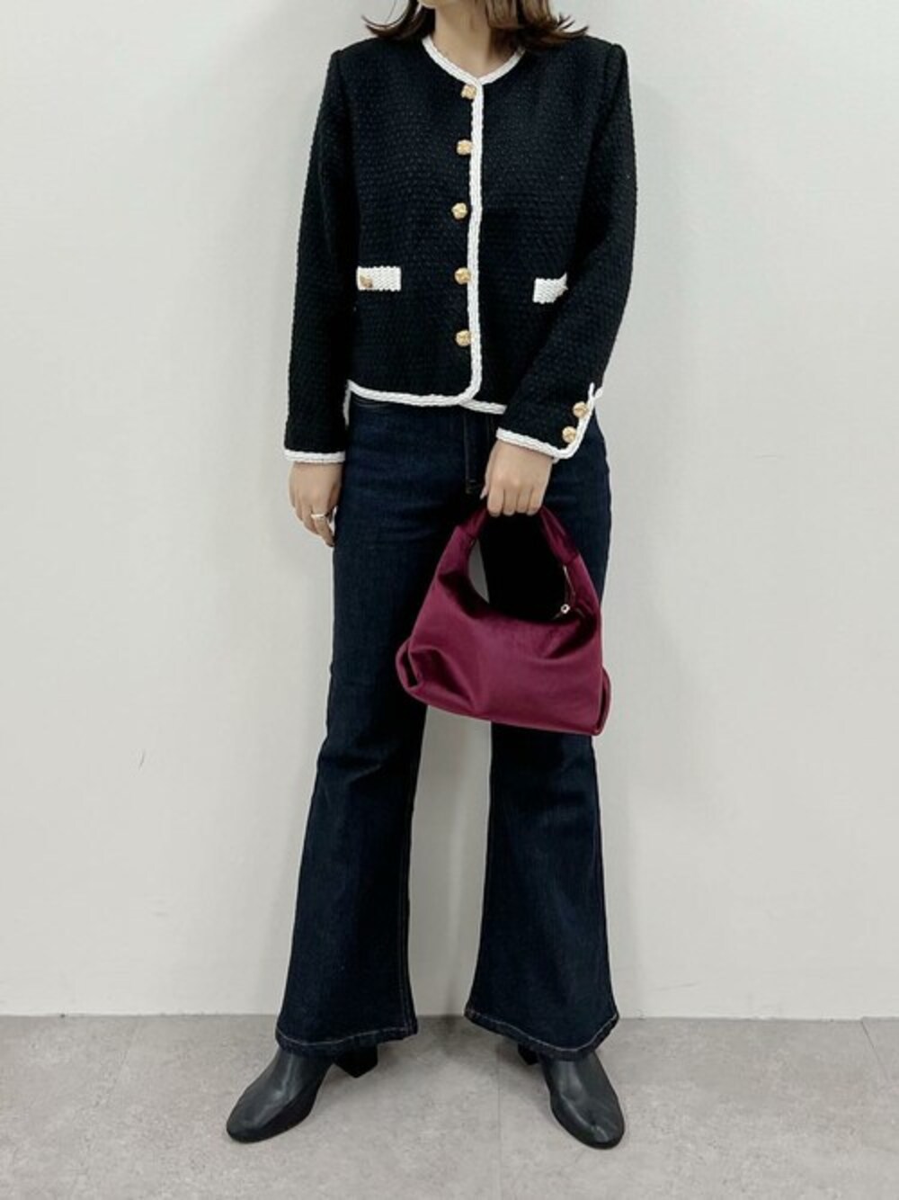 スタイルアップが叶うトレンドなコーデ [ misatoyさんコラボ ]ツイードジャケット [K1160] [ misatoyさんコラボ ]選べる2サイズ カットできるフレアデニムパンツ [M3730] [ misatoyさんコラボ ]ベロアワンハンドルバッグ [B1500] 着用アイテムから飛べない商品&ZOZOTOWNで未販売の商品は、神戸レタスのサイト内で商品ID検索が出来ます♡