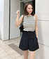 ノースリーブブラウス×ショートパンツで夏のオールブラックコーディネート ペプラムボリューミーブラウス [C7038] [ 鈴乃さんコラボ ] ウエスト調節OKタックショートパンツ [M4010] 着用アイテムから飛べない商品&ZOZOTOWNで未販売の商品は、神戸レタスのサイト内で商品ID検索が出来ます♡