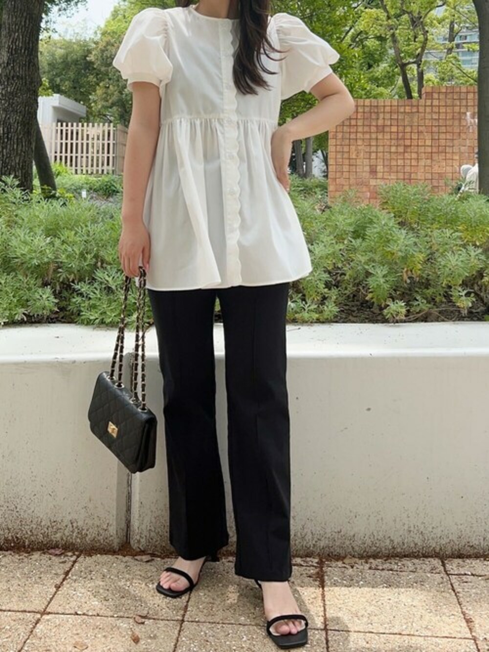 ブラウスが主役のモノトーンコーディネート ペプラムスカラップブラウス [C7164] 低身長から高身長まで のびのびストレッチフレアパンツ [M3746] ラウンドトゥTストラップサンダル [I2584] 着用アイテムから飛べない商品&ZOZOTOWNで未販売の商品は、神戸レタスのサイト内で商品ID検索が出来ます♡