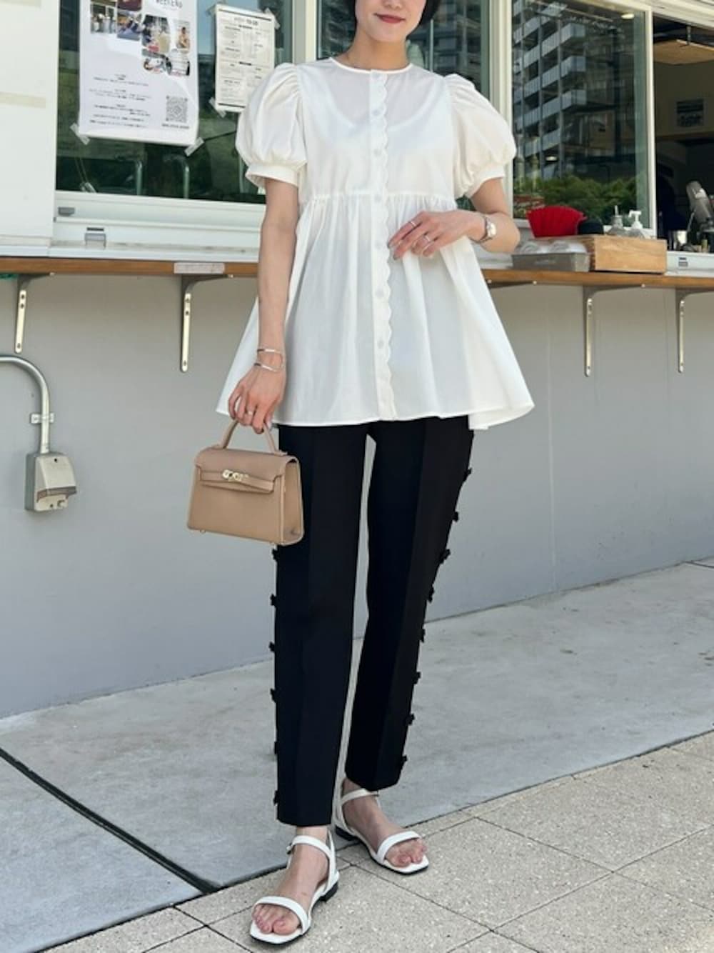 甘さあるブラウスが主役なコーディネート ペプラムスカラップブラウス [C7164] 着用アイテムから飛べない商品&ZOZOTOWNで未販売の商品は、神戸レタスのサイト内で商品ID検索が出来ます♡