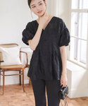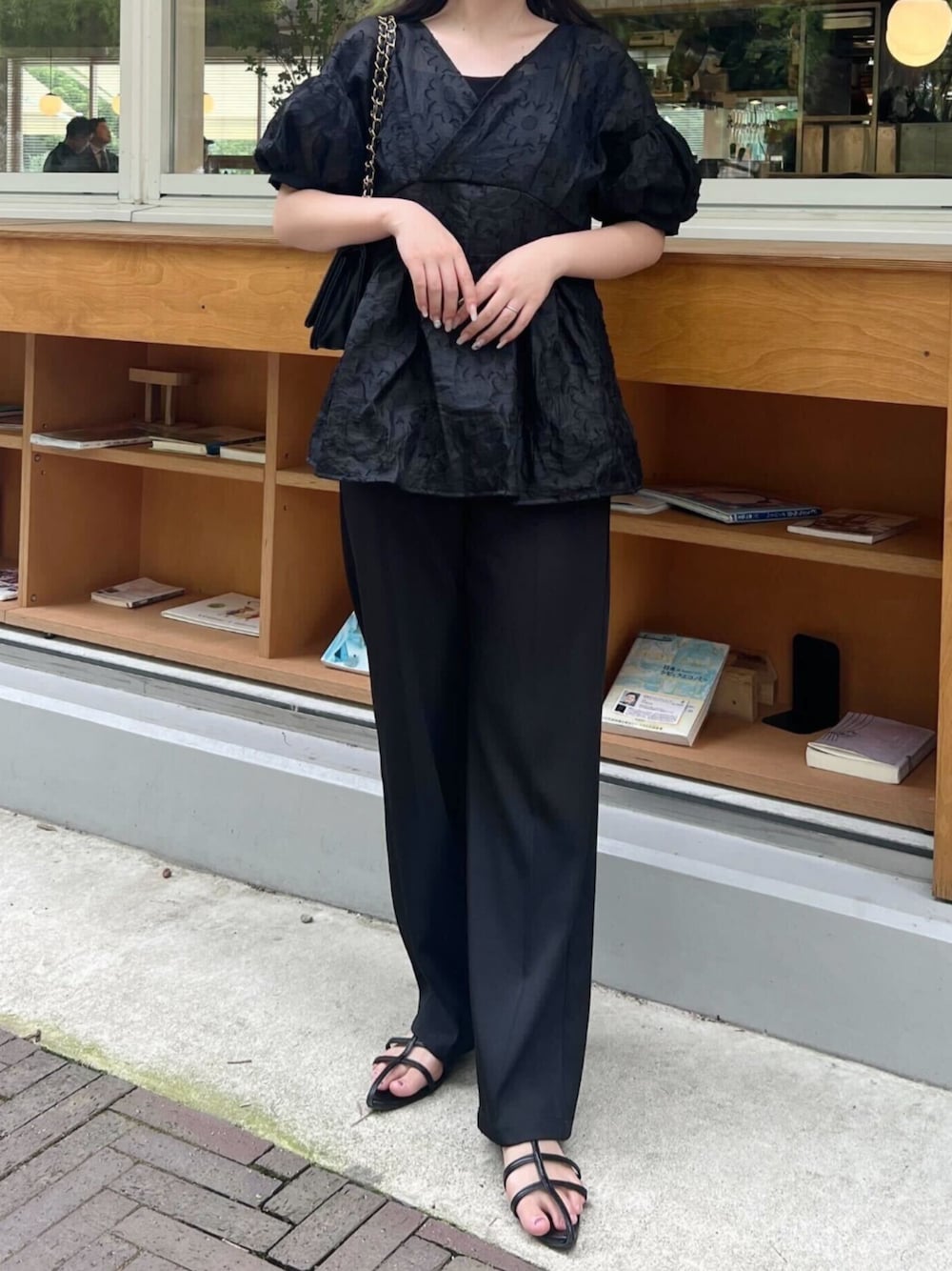 綺麗めブラウスが主役なオールブラックコーディネート Vネックフラワージャガードシアーブラウス [C7167] 着用アイテムから飛べない商品&ZOZOTOWNで未販売の商品は、神戸レタスのサイト内で商品ID検索が出来ます♡