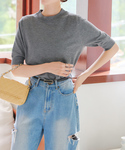 グレー×ホワイトで綺麗めコーディネート 5分袖ドルマンテイストハイゲージニットトップス [C7277] 着用アイテムから飛べない商品&ZOZOTOWNで未販売の商品は、神戸レタスのサイト内で商品ID検索が出来ます♡