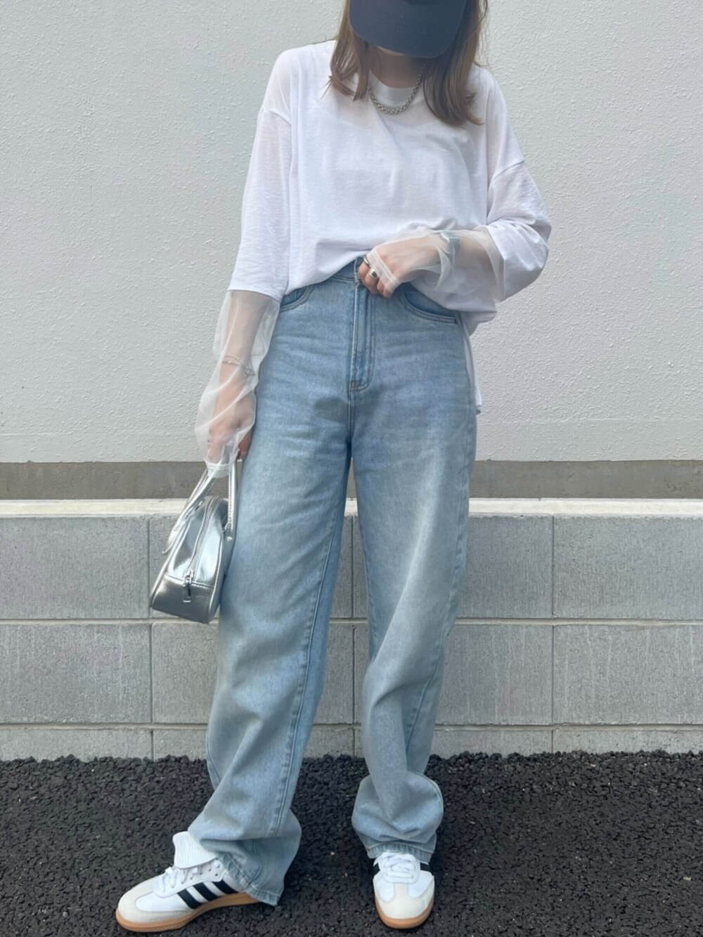 シアーがポイントになる秋のカジュアルコーディネート 袖シアートップス [C7289] 綿100%ハイウエストストレートワイドデニムパンツ [M4060] 着用アイテムから飛べない商品&ZOZOTOWNで未販売の商品は、神戸レタスのサイト内で商品ID検索が出来ます♡