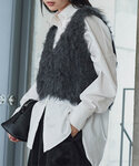 ファートップスがポイントになる、綺麗めカジュアルコーディネート シャギーニットベスト [N1098] [ 田中亜希子さんコラボ ] 選べるサイズ ジャージーワイドパンツ[M3363]