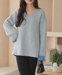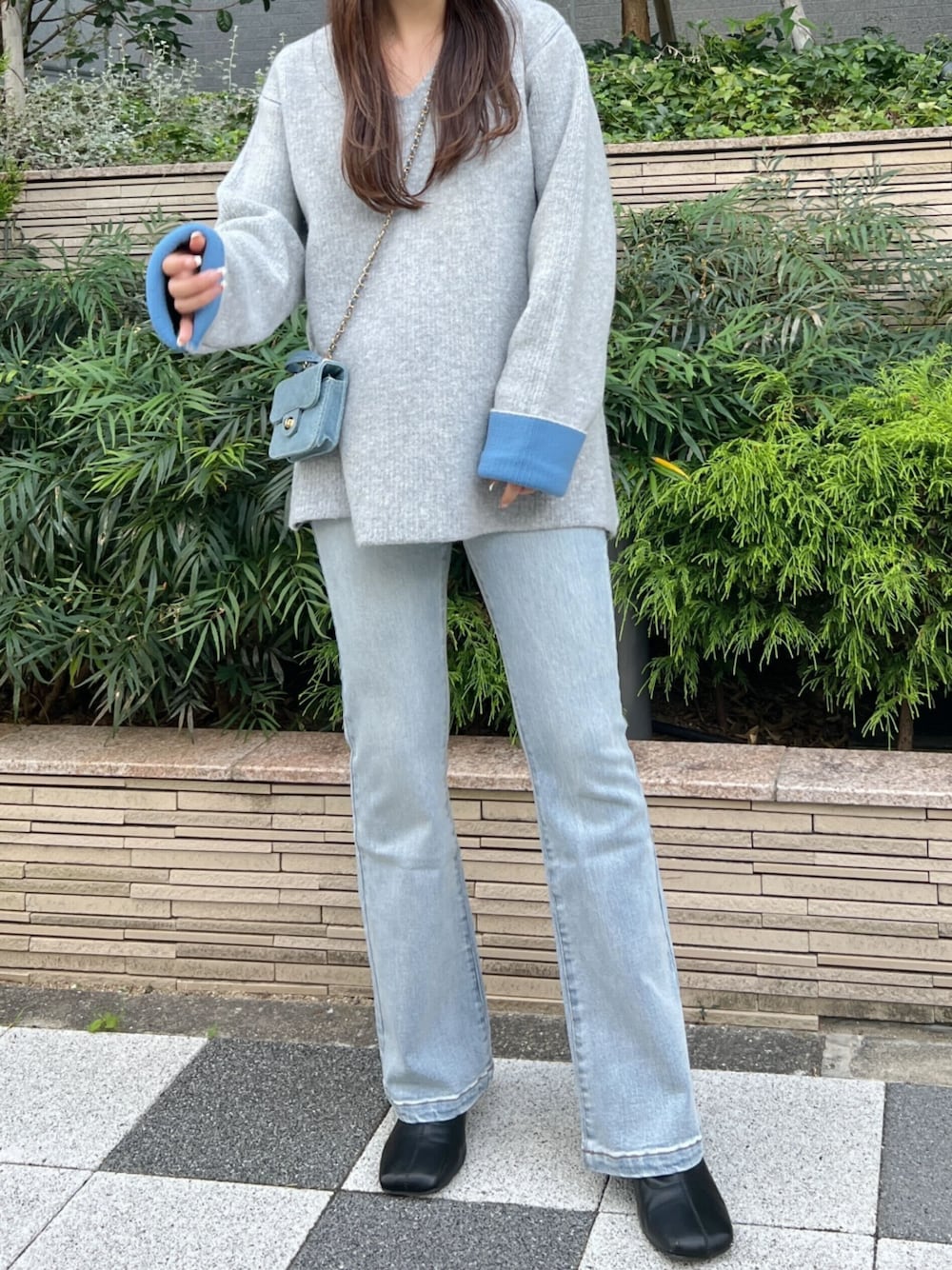 ワントーンで組み合わせた冬のデニムコーディネート 選べる2タイプ 配色ニット [N1114] ソフトフレアデニムパンツ [M4128] 着用アイテムから飛べない商品&ZOZOTOWNで未販売の商品は、神戸レタスのサイト内で商品ID検索が出来ます♡