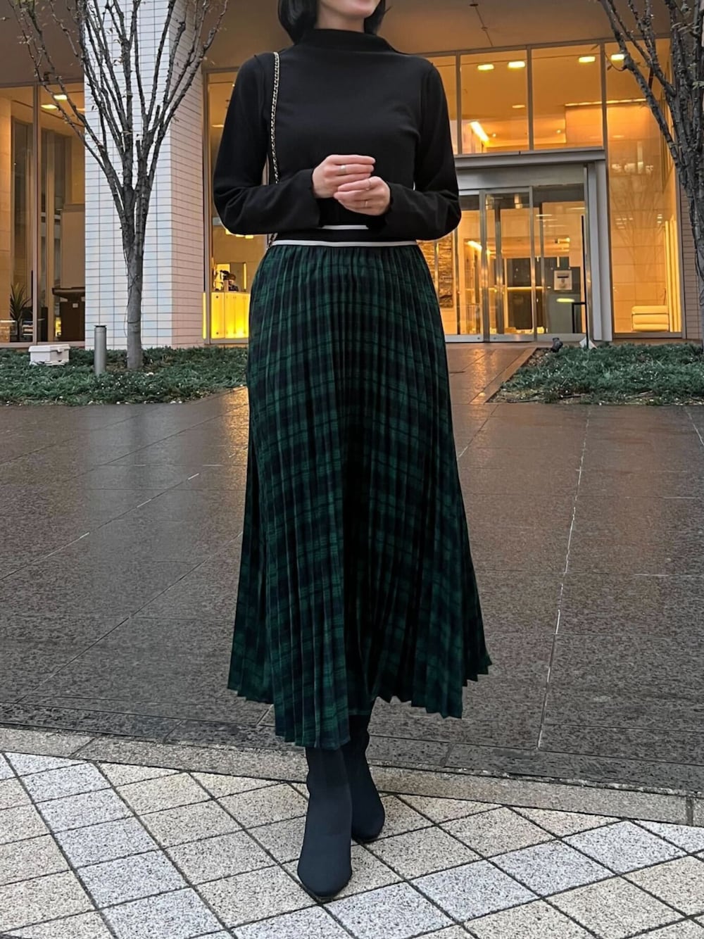 チェック柄スカートを主役にした綺麗めコーディネート テレコリブロングスリーブトップス [C7314] ウエストラインゴムチェックスカート [M4164] 着用アイテムから飛べない商品&ZOZOTOWNで未販売の商品は、神戸レタスのサイト内で商品ID検索が出来ます♡