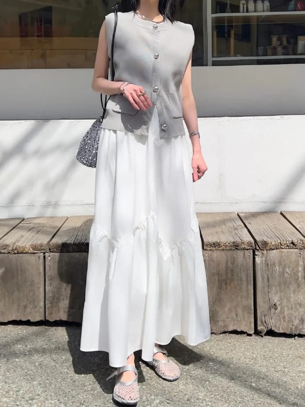ポケット付きノースリーブニットトップス [C7447] [ yuiさんコラボ ]バイアス切替えギャザースカート [M4191] 着用アイテムから飛べない商品&ZOZOTOWNで未販売の商品は、神戸レタスのサイト内で商品ID検索が出来ます♡