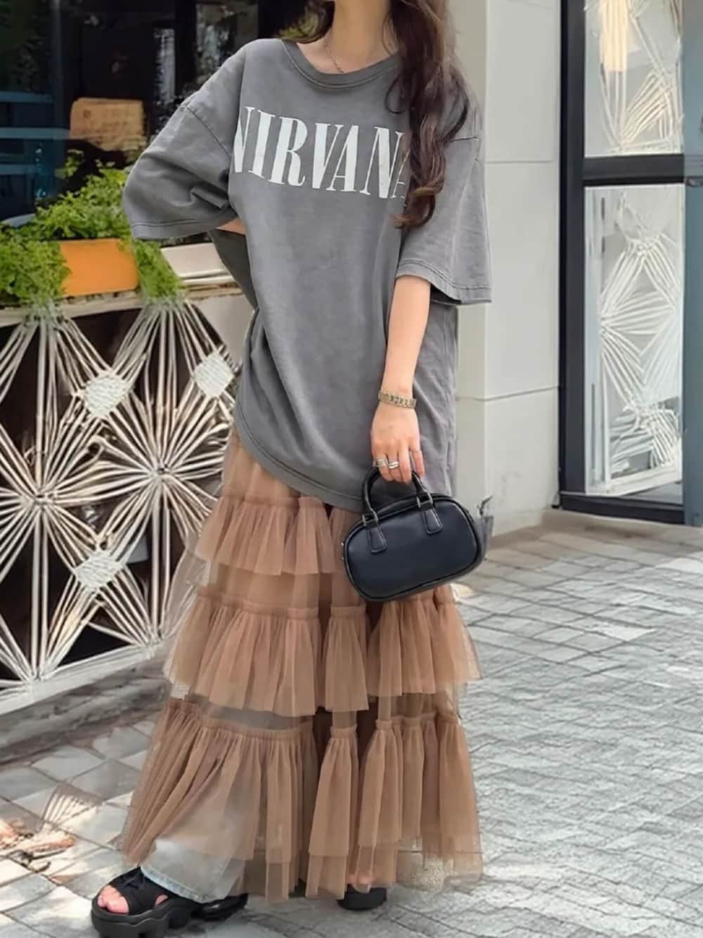 神戸レタス(KOBE LETTUCE本部)のスカート「ティアードチュールスカート」を使ったコーディネート