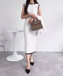 神戸レタス(KOBE LETTUCE本部)のワンピース「[ 岡部あゆみさんコラボ ]選べるネックとタイプ リブニットノースリーブワンピース」を使ったコーディネート