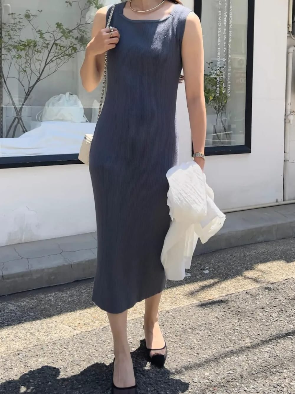 神戸レタス(KOBE LETTUCE本部)のワンピース「[ 岡部あゆみさんコラボ ]選べるネックとタイプ リブニットノースリーブワンピース」を使ったコーディネート