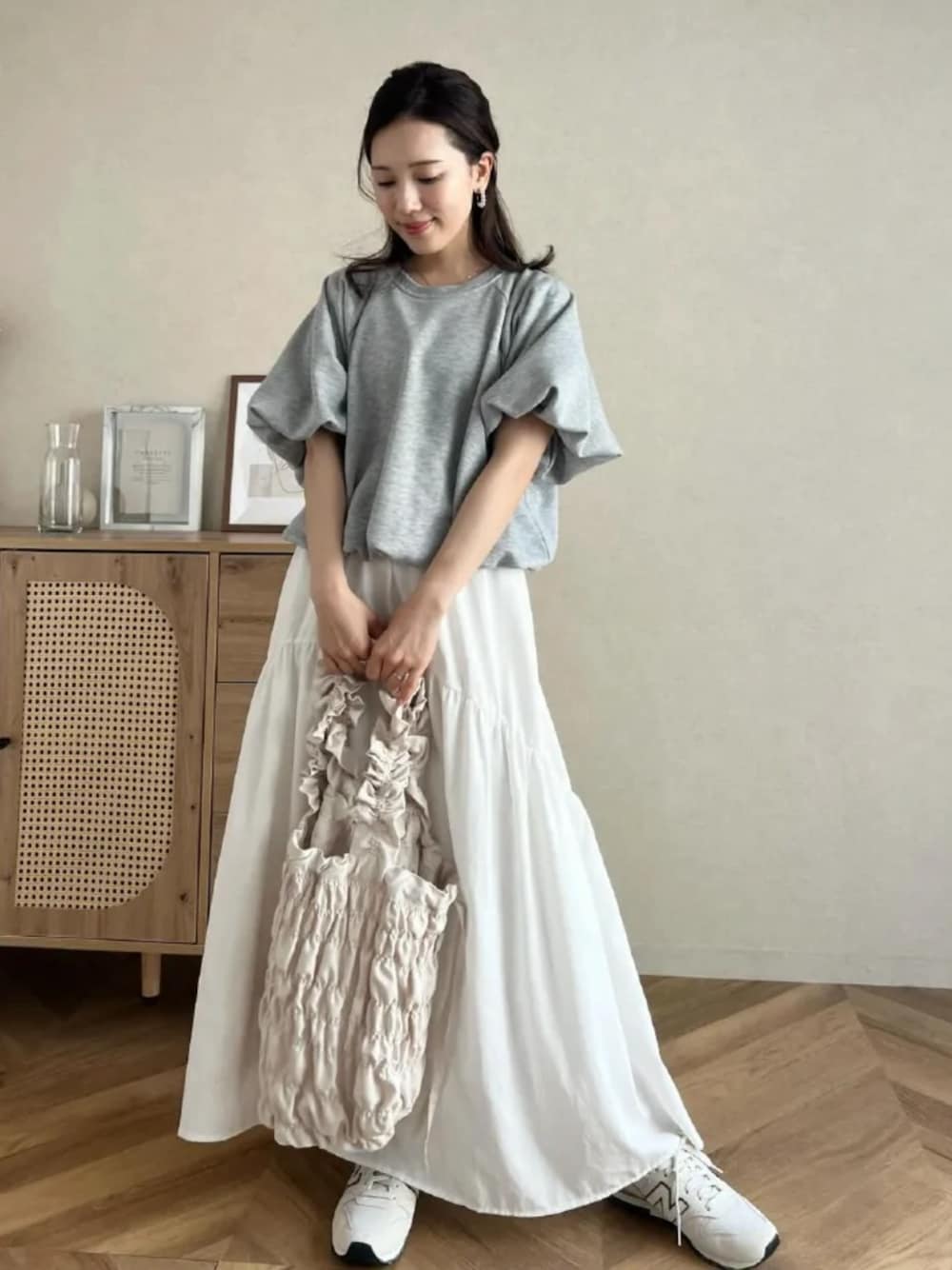 [ Petitle / プチレ ] ラウンドギャザー切り替えロングスカート [M3672] ラグランスウェットバルーントップス [C7502] [ yuiさんコラボ ] シャーリングバッグ [B1604] 着用アイテムから飛べない商品&ZOZOTOWNで未販売の商品は、神戸レタスのサイト内で商品ID検索が出来ます♡