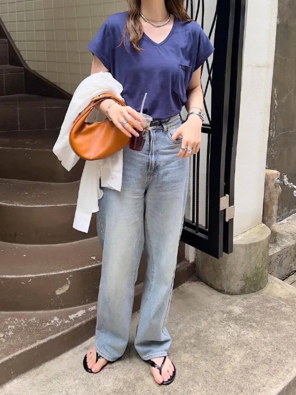 [ M L XL 汗じみ防止&UVカット ] ポケット付きVネックTシャツ [C7575] 綿100%ハイウエストストレートワイドデニムパンツ [M4060] ハーフムーンバッグ [B1548] 着用アイテムから飛べない商品&ZOZOTOWNで未販売の商品は、神戸レタスのサイト内で商品ID検索が出来ます♡