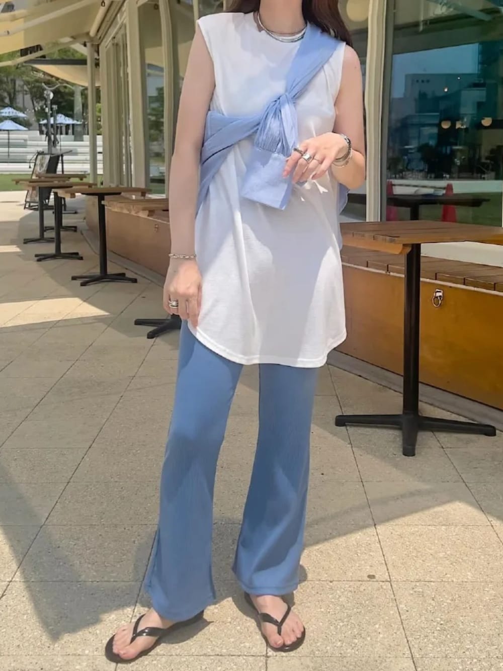 ラウンドカットインナータンクトップス [C7582] 選べる3丈 接触冷感サイドスリットフレアリブパンツ [M3932] [ 田中亜希子さんコラボ ] 選べる2丈ボリュームスリーブシアーシャツ [C6967] 着用アイテムから飛べない商品&ZOZOTOWNで未販売の商品は、神戸レタスのサイト内で商品ID検索が出来ます♡