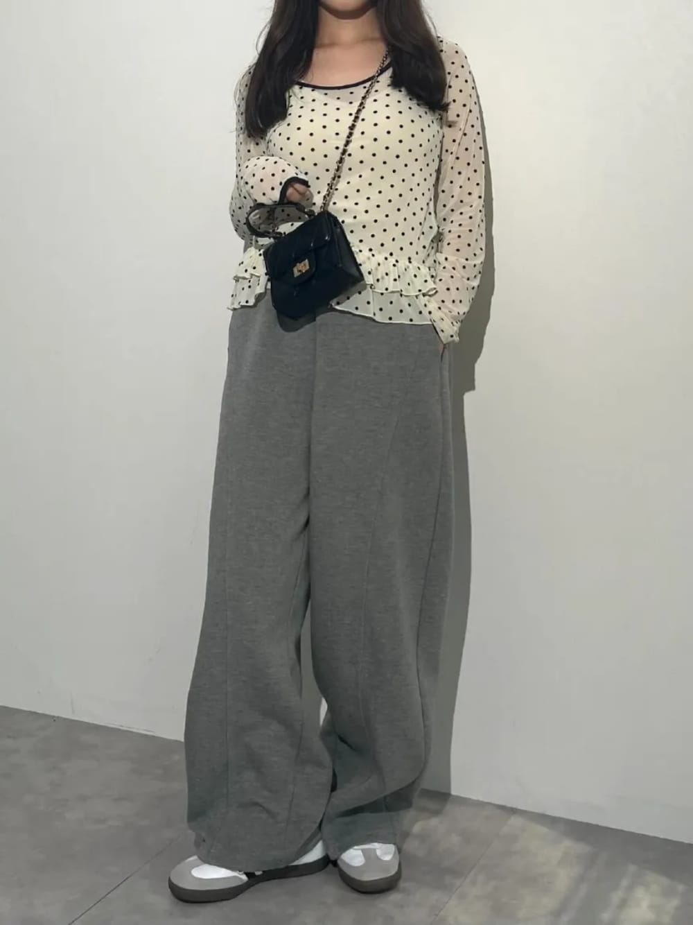 ドットシアー裾フリルトップス[C7590] ダイバー素材ワイドカーブパンツ[M4050] 着用アイテムから飛べない商品&ZOZOTOWNで未販売の商品は、神戸レタスのサイト内で商品ID検索が出来ます♡