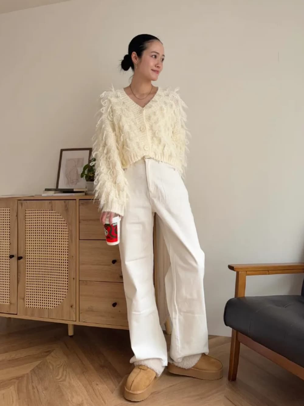 ループ編みフェザーニットカーディガン [N1293] [ 岡部あゆみさんコラボ ]ワイドストレートデニム [M3953] 2way厚底バックバンドムートンサンダル [H578] 着用アイテムから飛べない商品&ZOZOTOWNで未販売の商品は、神戸レタスのサイト内で商品ID検索が出来ます♡