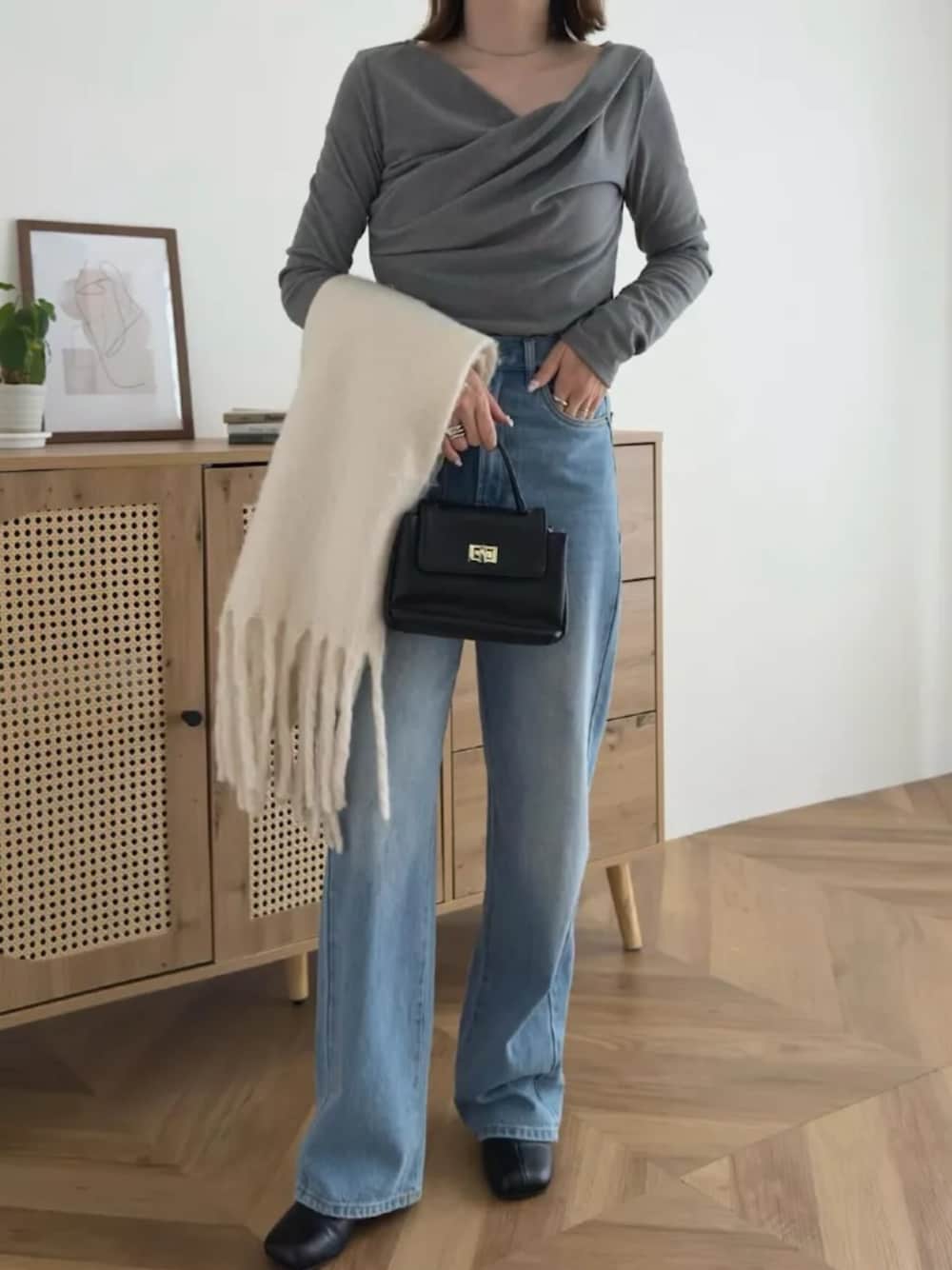 [ 裏微起毛 ] ドレープトップス [C7771] 綿100%ハイウエストストレートワイドデニムパンツ [M4060] 着用アイテムから飛べない商品&ZOZOTOWNで未販売の商品は、神戸レタスのサイト内で商品ID検索が出来ます♡