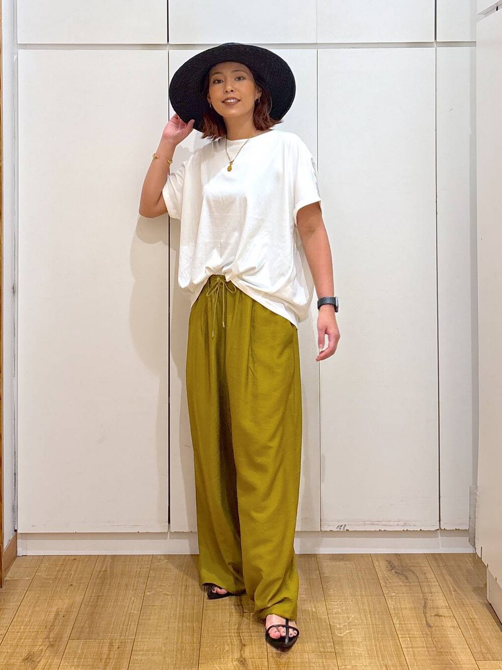 ココ(GLOBAL WORK ららぽーと横浜)のサンダル「クロスフラットサンダル」を使ったコーディネート