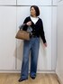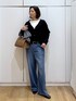 ココ(GLOBAL WORK ららぽーと横浜)のカーディガン/ボレロ「スウェットライクVネックカーディガン/571348」を使ったコーディネート