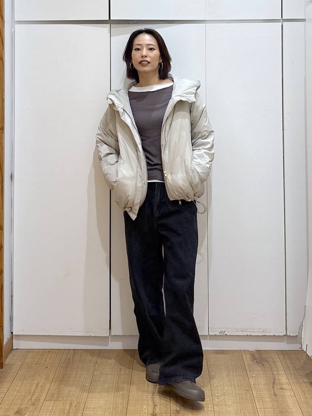 ココ(GLOBAL WORK ららぽーと横浜)のダウンジャケット/コート「エアリュクスダウンフードブルゾン/495695」を使ったコーディネート
