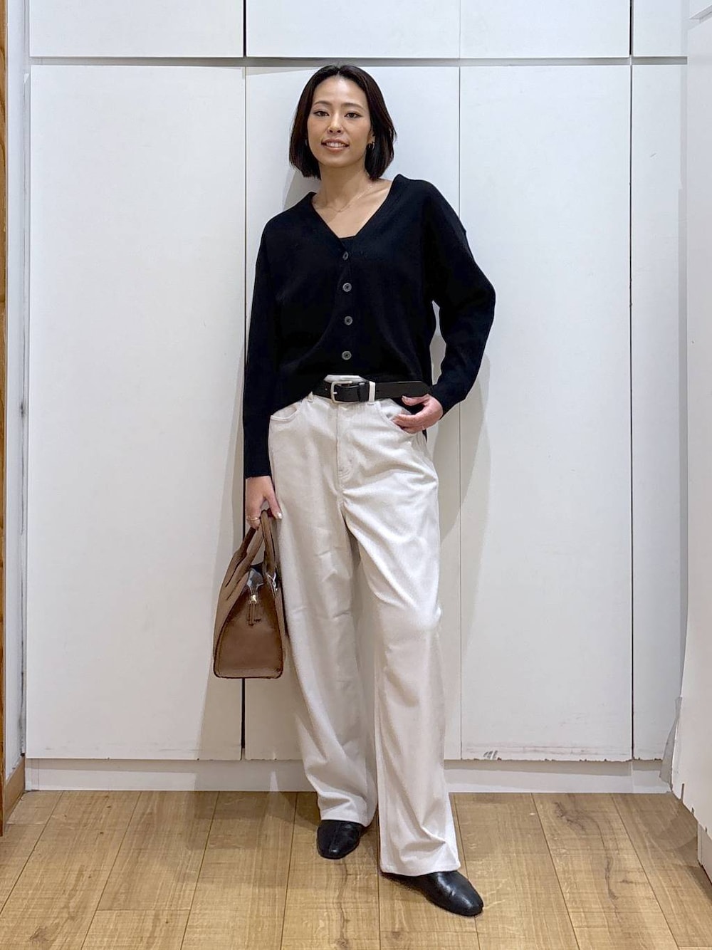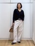 ココ(GLOBAL WORK ららぽーと横浜)のカーディガン/ボレロ「スウェットライクVネックカーディガン/571348」を使ったコーディネート
