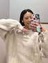 ココ(GLOBAL WORK ららぽーと横浜)のニット/セーター「フワフワHugmeケーブルプルオーバー/581034」を使ったコーディネート