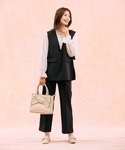 ココ(GLOBAL WORK ららぽーと横浜)のセットアップ「ストレッチベスト*ブラウス*パンツセット/581026」を使ったコーディネート