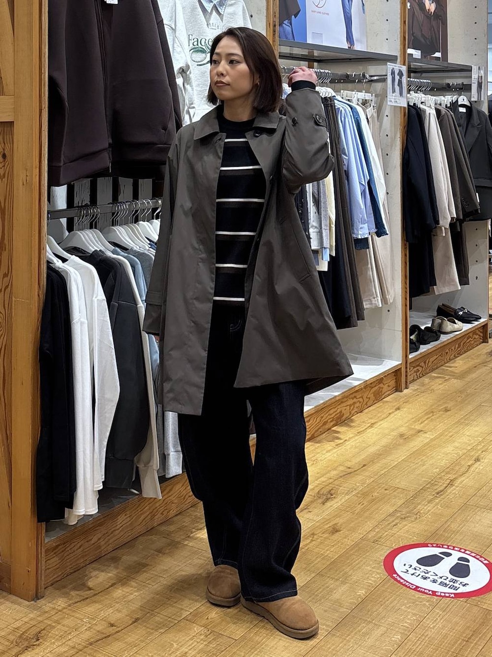 ココ(GLOBAL WORK ららぽーと横浜)のステンカラーコート「防風ステンカラーミドルコート/612367」を使ったコーディネート