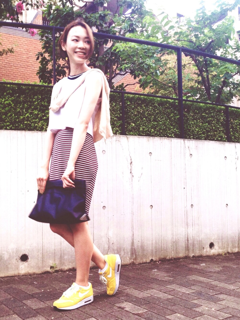 あ〜つ〜い〜 🙈 私のナイキiDお気に入りハッピーラッキー🙊 スカートはラフォーレのセールで仕入れたものです、がんばったなあ🙉🙉🙉