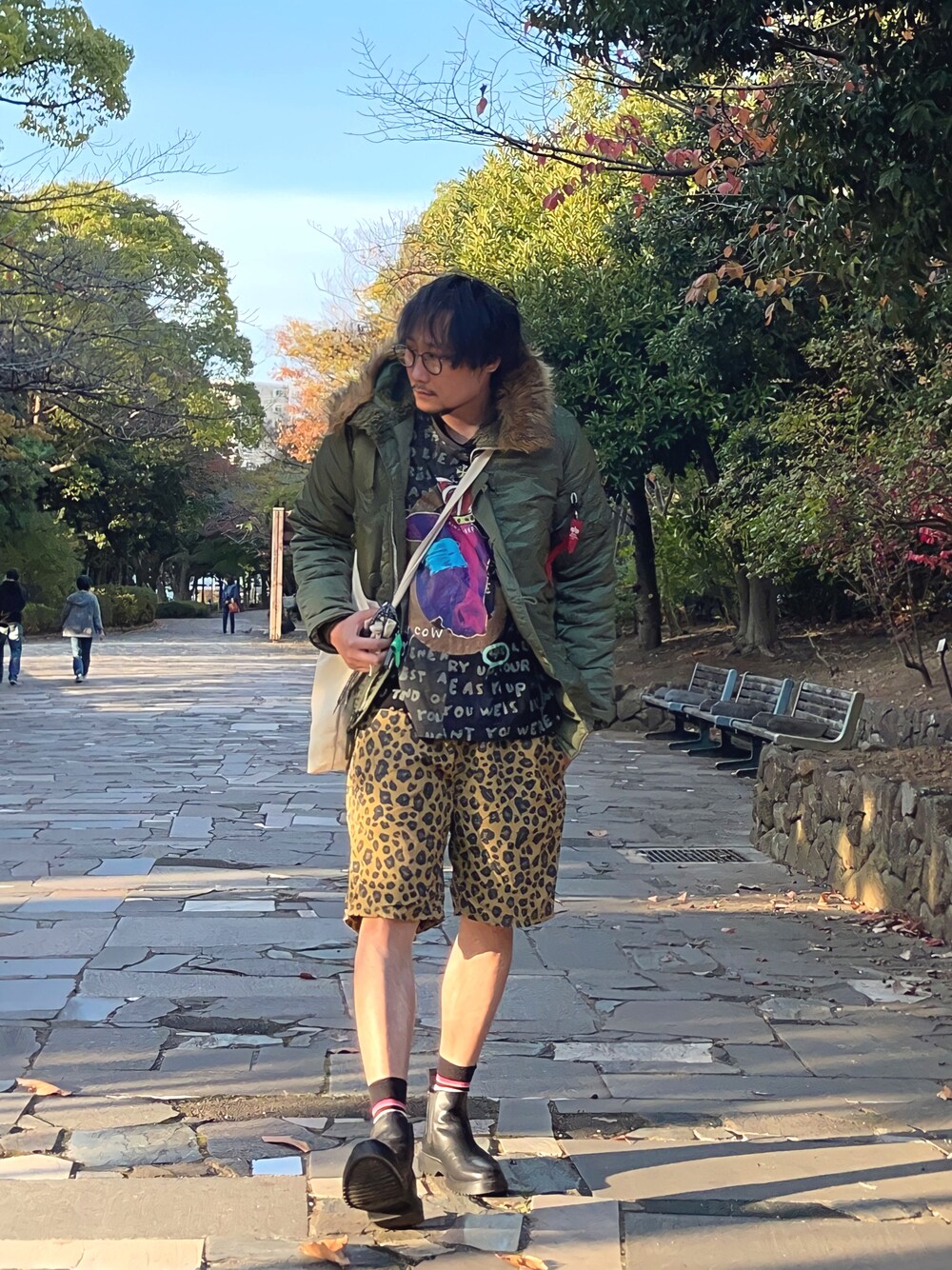 昨日、急遽取り直しましたアニマルもといレオパコーデです。 🏷#アニマルフェス2022 🏷#レオパ部(こんなアイテムで大丈夫か) 🏷#お散歩 りょたさん❣️僕にはこれが現状の手持ちで出来る秋コーデです🐆💧💧 ●レオパアイテムがこのショーツとスリッポンしかなくって、スリッポンは少し合わないかなっと感じて安定の黒ブーツです🥾(こいつはホントに優秀ですね) ●ゴッズビーフアギーT、(神の牛の継ぎ合わせTシャツ)水陸両用夏のレオパショーツ。がアニマルアイテム。🐆。🐄。 ●カジュアル過ぎ、チラチラ過ぎたので、ブーツがめっちゃ大人感出してくれますよね❓よね。。 ん⁉️ ●キレイめ路線にもって行かずミリタリーブルゾンも合わせによっては秀逸。 ●白ショルダーを差して垢抜けとシティーライクな存在感を少しでもプラス ☆★日中の寒暖差がでかいです 昼間と違って夜は防寒対策をして遊びにいきましょう ※間違っても短パンは履かないように😂👆 つか、今日めちゃくちゃ寒いですね🥶😨