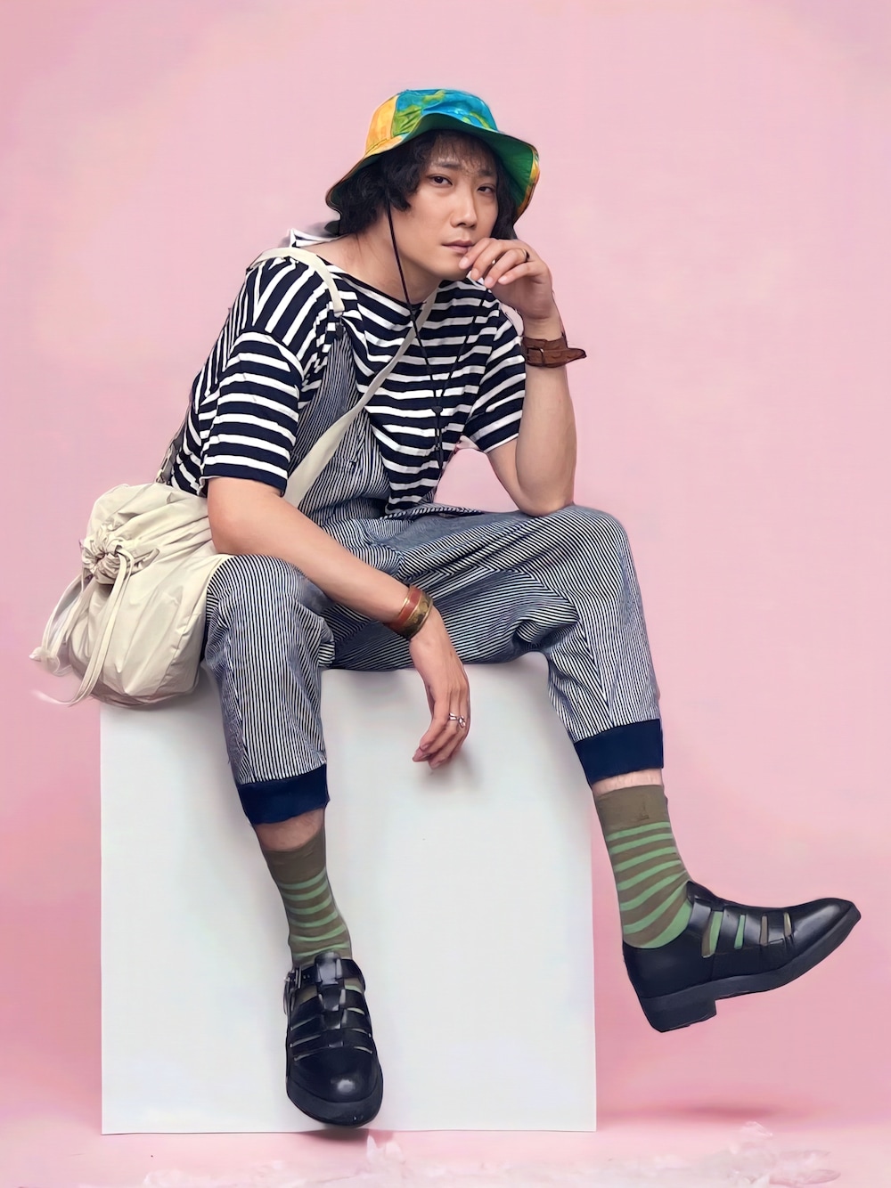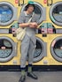 コインランドリーめっちゃ映える 僕が唯一ひとつだけ持ってるサロペ。肩紐だけ掛けたり 両肩外して腰にベルトするとたらーんとした感じで着れます😉🎶 いつも観て下さり有り難う御座います🙇♂️ ◎ヒッコリーストライプドデニムサロペット ◎ボーダーTシャツ ◎派手柄バケットハット