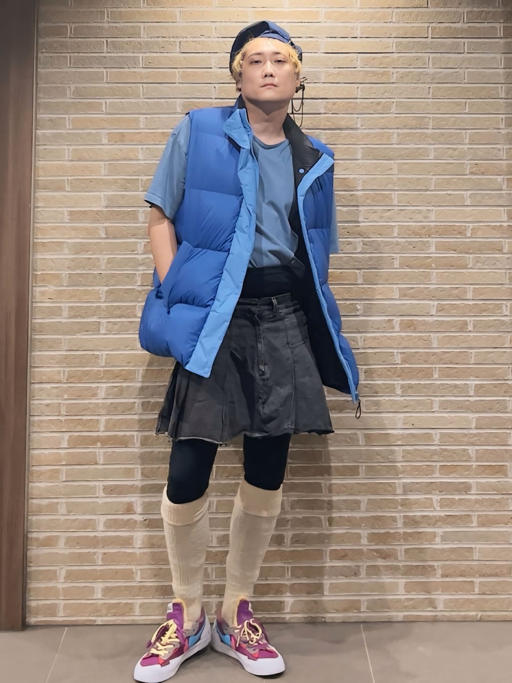 レイヤード。ロングソックス、レギンス、スカート。 からのTシャツタックイン。 いつぞやのUNIQLO×マルニのダウンベスト。 ベレー帽にアクセ付けてモード感アップ🙃🫧 NIKE×SACAIスニーカーでTシャツのラフな感じを拾い上げつつ、自分なりの先進的なモードスタイルを考えてみました いつもありがとうございます😊♪ モード好き。レイヤード好き。スニーカー好き。色んな服を組み合わせるの好き。色んな好きが詰まったコーデに仕上がって個人的にはテンションあげあげ😚✨