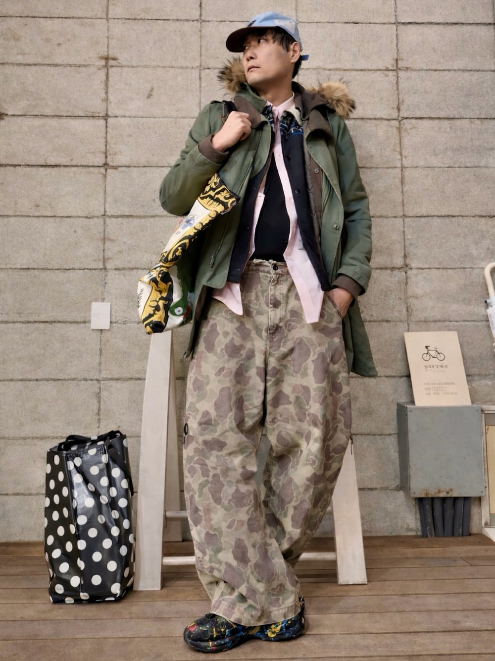 まっちゃんのその他パンツ「NAUTICA/ノーティカ スーパーワイド カーブシルエット カモ柄ペインターパンツ ダックハンター柄 リアルツリーカモ柄」を使ったコーディネート
