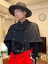 前回のコーデからパンツはs'yteの今期スラックスにサスペンダー、ハットを組み合わせたコーデ🎩 スラックスの裏地のさりげないデザインがお気に入りです ドッキングコートは肩位置があって無いようなモノでしてコートに付いてるサスペンダーで肩位置を決めて着るみたいになってます😊