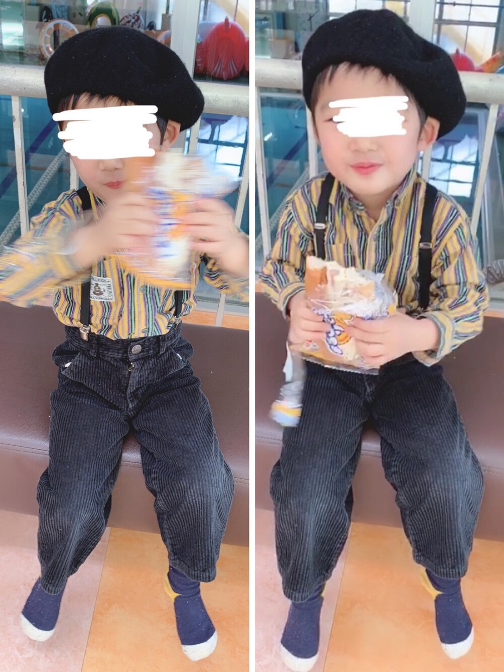 格安コーデ💓 レトロなイメージ^ ^ スイミング前に🏊♂️パンを頬張る!笑