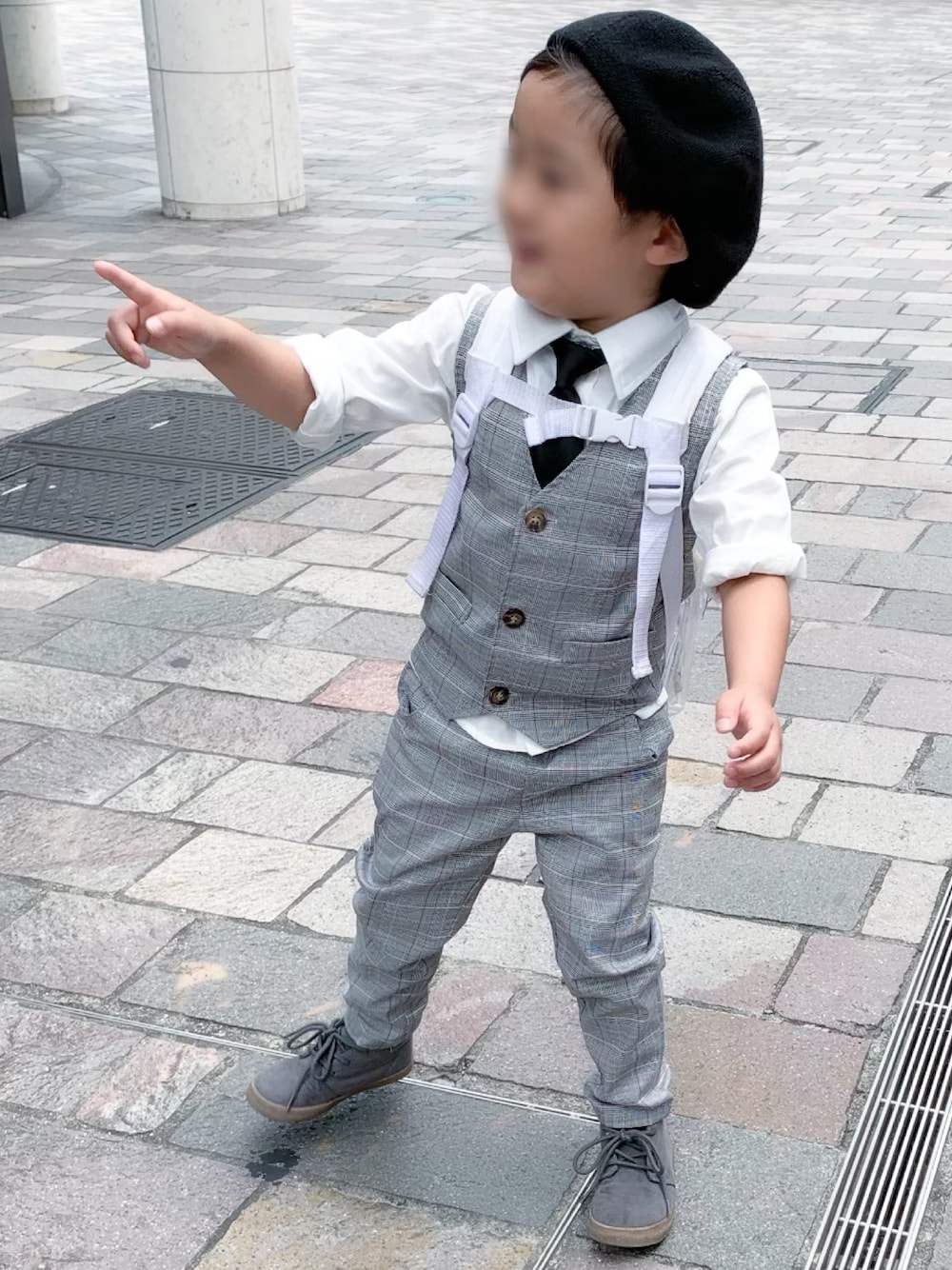 母のお友達の結婚パーティー赤坂♥︎♥︎ 今回はYahoo!ショッピングで購入!! これで2200円とは安い👏 ジャストサイズで着せたくて、100頼んだらキツイ!! 細身の息子もお腹キツイしシャツでちゃうし、やはリ試着が必要🤲 そんでもってグレーの中に、薄ーいピンクの線が… だから色物は入れられなかった😂 付いていたリボンは、ダサかったのでネクタイ👔に変更📝 なんだかんだ可愛いかった❤️
