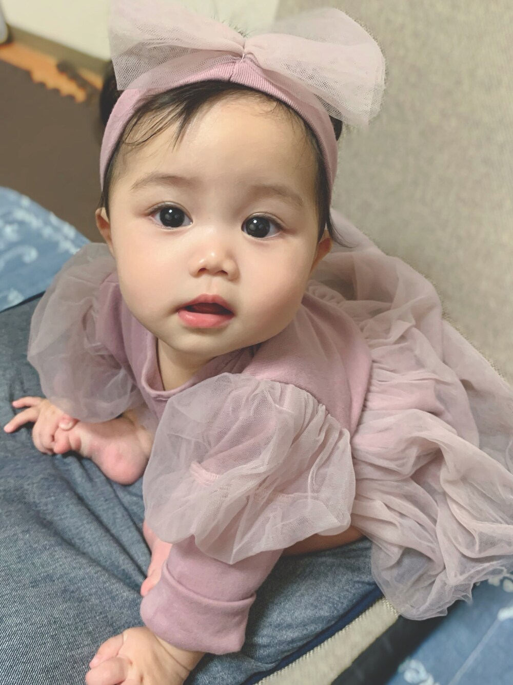 秋服🍂 ロンパースにチュールスカートが付いていて可愛い♡ 肩もお姫様みたいなラブリーな服👗 女の子だと着せたくなる、ふリふリ。笑