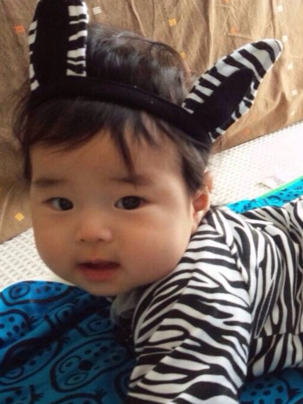 ゼブラプリントロンパースを可愛く着こなしてくださっています。耳も尻尾もついたなりきりロンパースは、ハロウィンやパーティーでも大注目です!