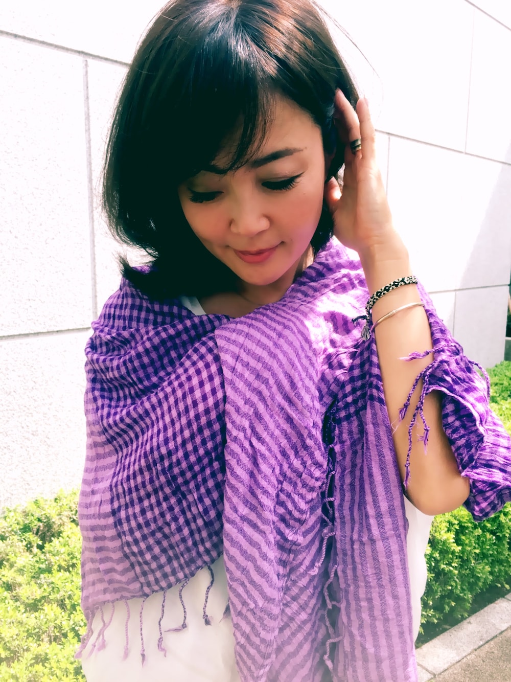 【新作ストール】スペシャルセール中☆ 白シャツ×ピュアコットンストール 今日のような少し風がつめたい日にオススメなのがストール 肩からかけるだけで風よけになり、コーディネートのポイントにもなります 薄手のコットン素材なので、ぐるぐるっとカバンにも収納でき、便利な1枚です