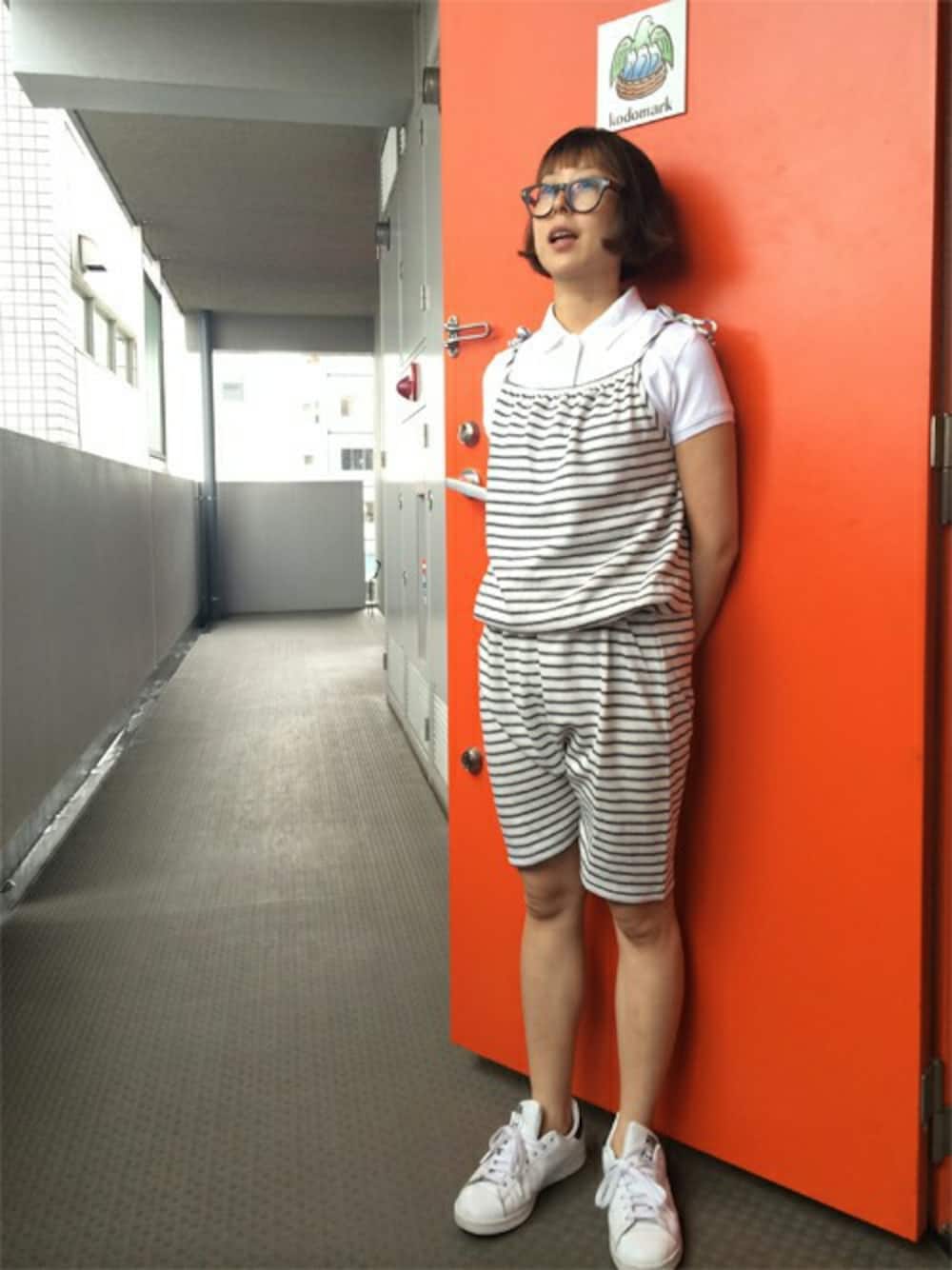 こどまーくプレススタッフのサロペット/オーバーオール「肩紐ショートサロペットパンツ」を使ったコーディネート