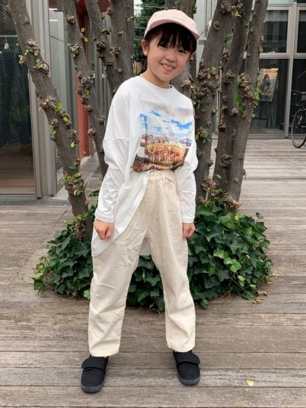 【白のかわいさ】を引き立てるワントーンコーディネート♩あえてのカジュアルで、かわいく楽ちんに仕上がります。 【Model : H120(cm)】