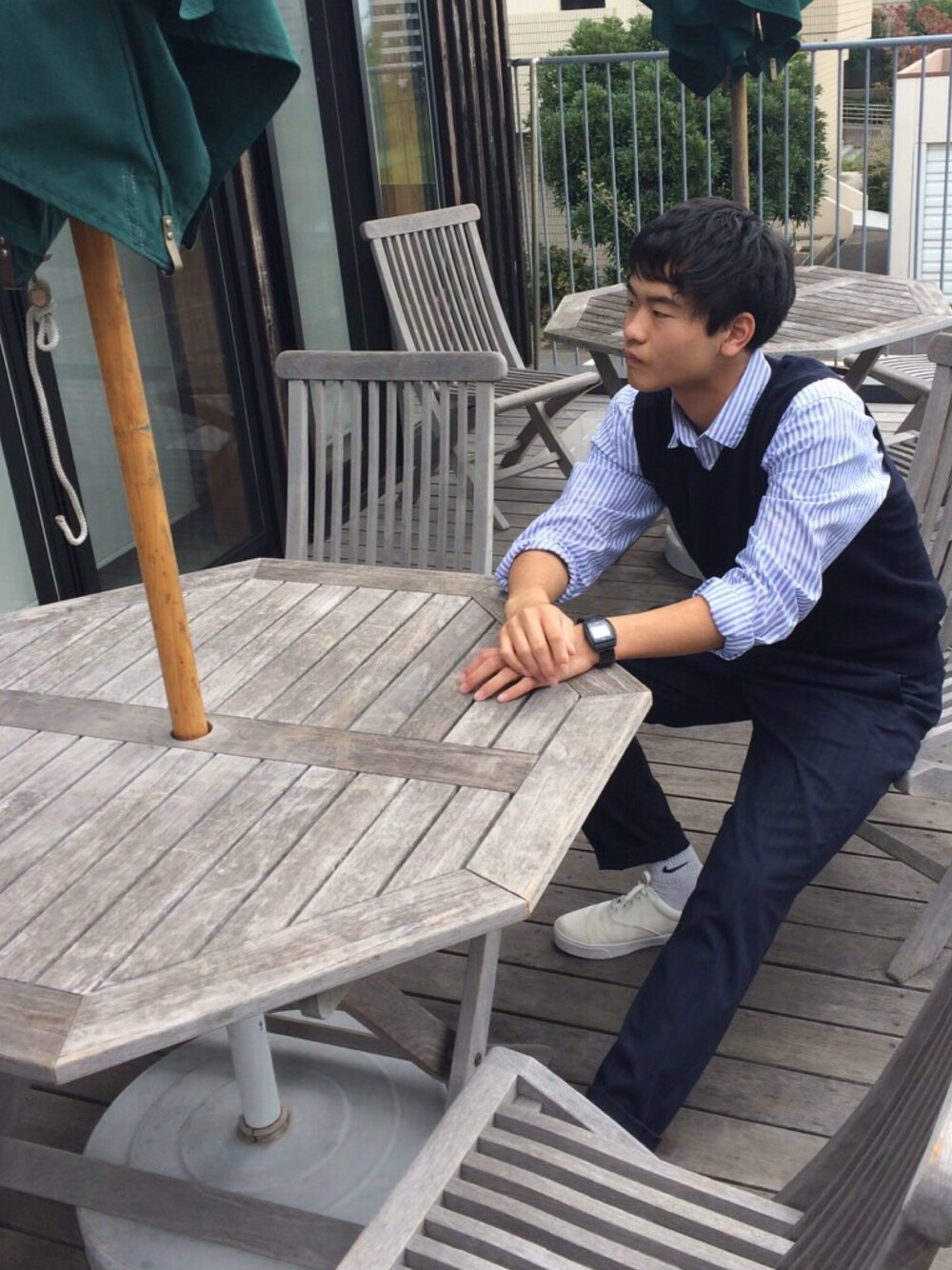 今日はシャツにベスト👍 ユニクロのセーターいいね👌