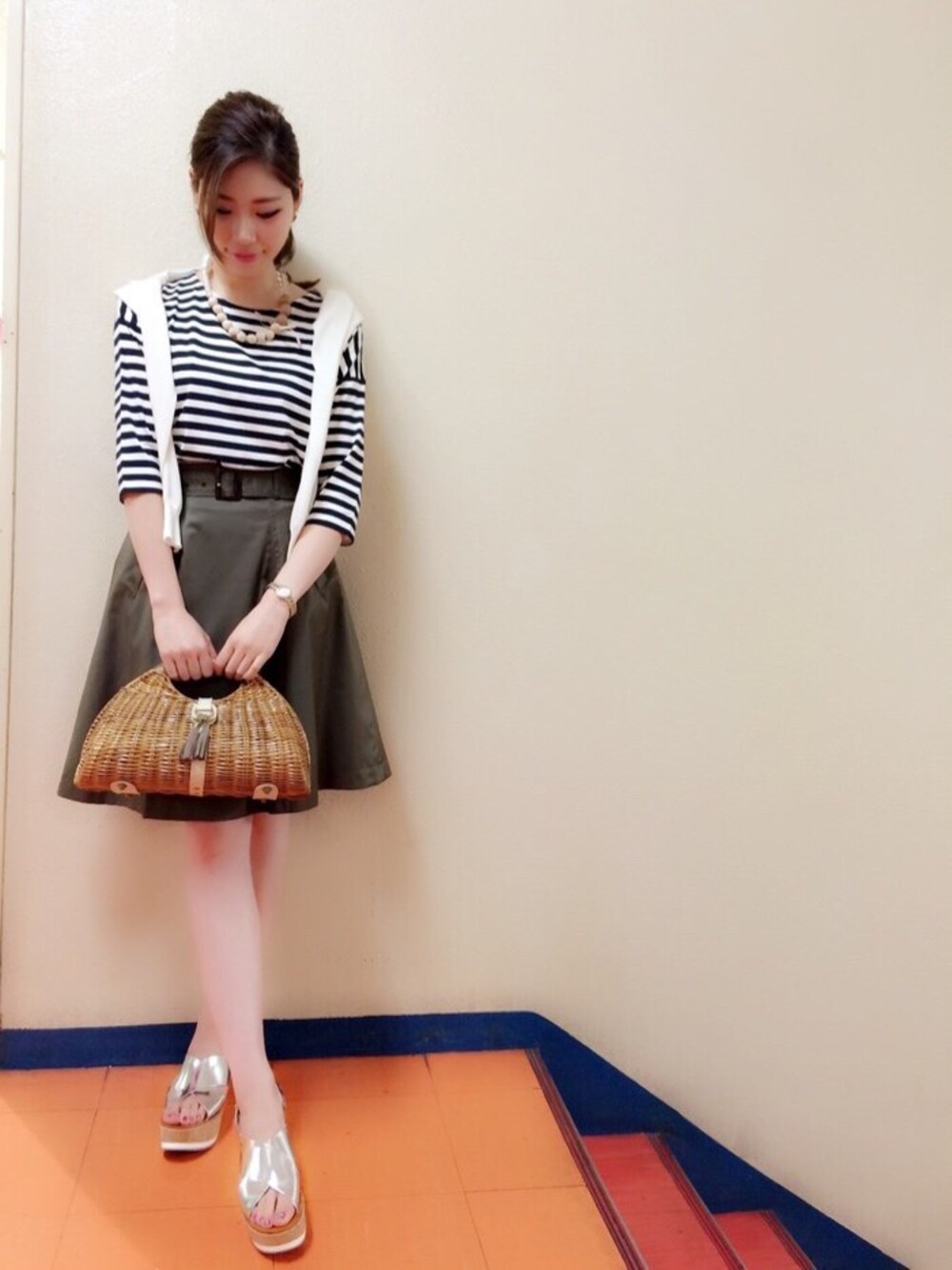 namiのかごバッグ「【KATHARINE ROSS】トライアングルラタンバッグ」を使ったコーディネート