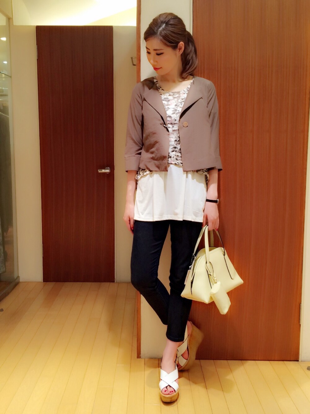 しっかり丈のチュニックと コンパクトなジャケットは 相性抜群です!! お洋服、バッグ、シューズは 店頭販売です👗