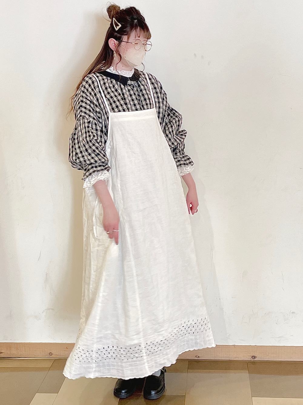 kazumiさんコラボを店頭で着たくて ウズウズしている小枝です( ᗢ̈ )ʺ̤オハヨウゴザイマス ご覧頂きありがとうございます 𖡼.𖤣𖥧 いいね、フォロー、お気に入り、 フォルダイン、コメント 大変励みになります(৹˃̵௰ก̀৹)°。 本日はSamansa Mos2✖️kazumiさんコラボ の白ブラウスと前後着チャコールOP、 白キャミワンピースのコーディネート◎ 上にキャミワンピを着るという、 kazumiさんのインスタライブの着方です! こうすると白のキャミOPでも透けないですし 、チャコールチェックでも暗くならず、 春らしく着ていただけます・*:。❁ 参考にして頂けると幸いです ☺︎ *…*…*…*…*…*…*…*…*…*…*…*…*…*…*…*…*…*…*…* 店頭では初春もの再値下げ行いまして 大変お求めやすくなっております‼︎ 是非ペリエ稲毛店にお越しください ♡
