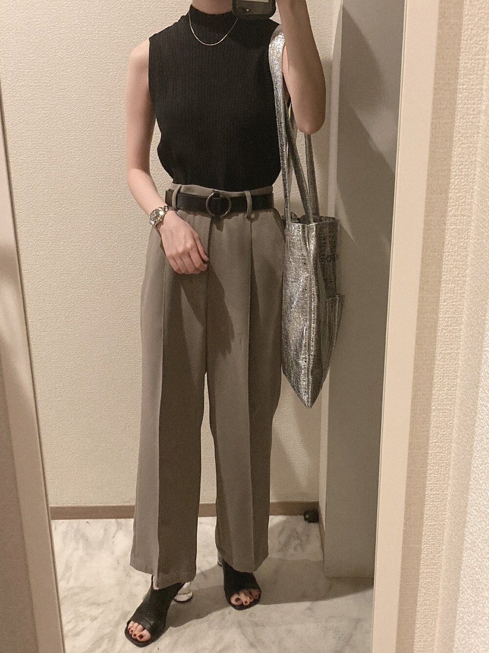 着用コーデ:27件苔のニット/セーター「デザインリブノースリーブニットトップ」を使ったコーディネート