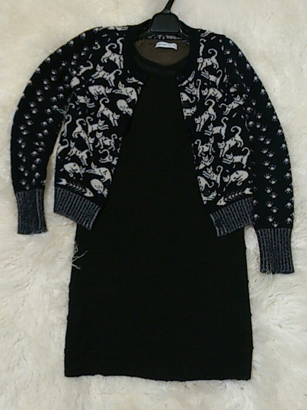 控えめ花柄のワンピースに派手派手猫カーデを羽織りました☆