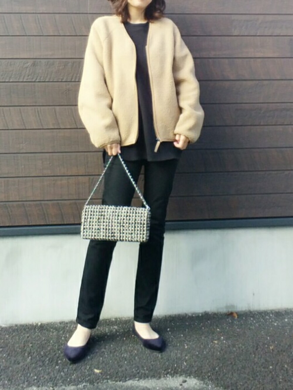 Seri*のその他アウター「ボアフリースVネックフルジップカーディガン(長袖)」を使ったコーディネート