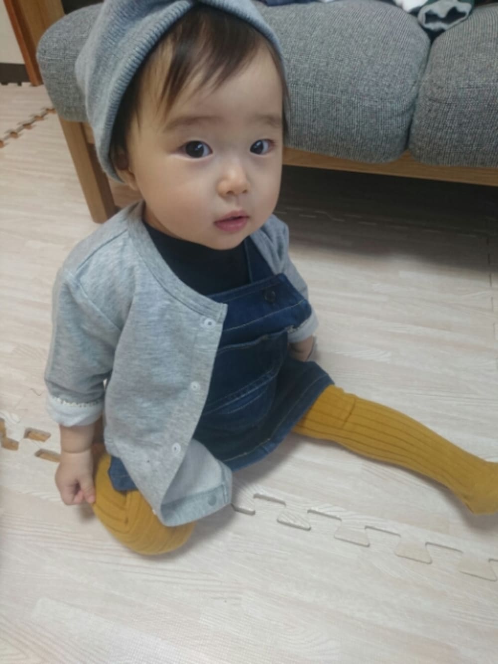 今日はなんだかシャープな眼差し♡ 娘は一重の日と二重の日があるのですが 今日は両目とも一重😌 もはや一重と二重では 顔が違くておもしろい😉💕 寒かったので リブタイツ履かせてみました👍 あ、一昨日から夜泣きみたいの はじまりました🙌