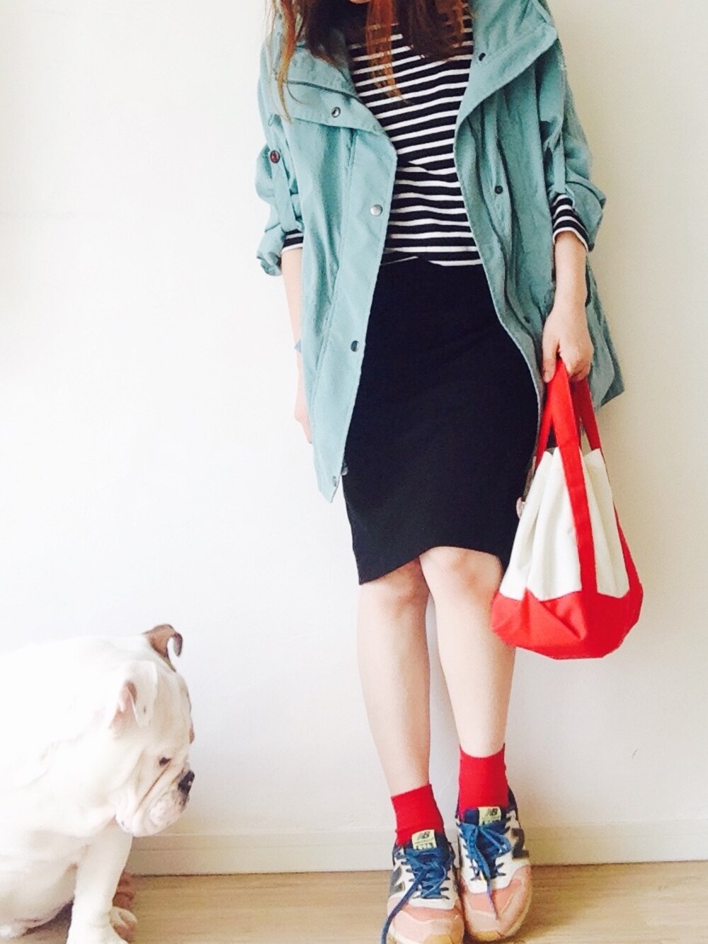 しげちゃん… 靴見すぎです…。 バッグは、先日お仕事で作ったものです。 ジャケット:チャオパニック トップス:ジャーナルスタンダード スニーカー:ニューバランス