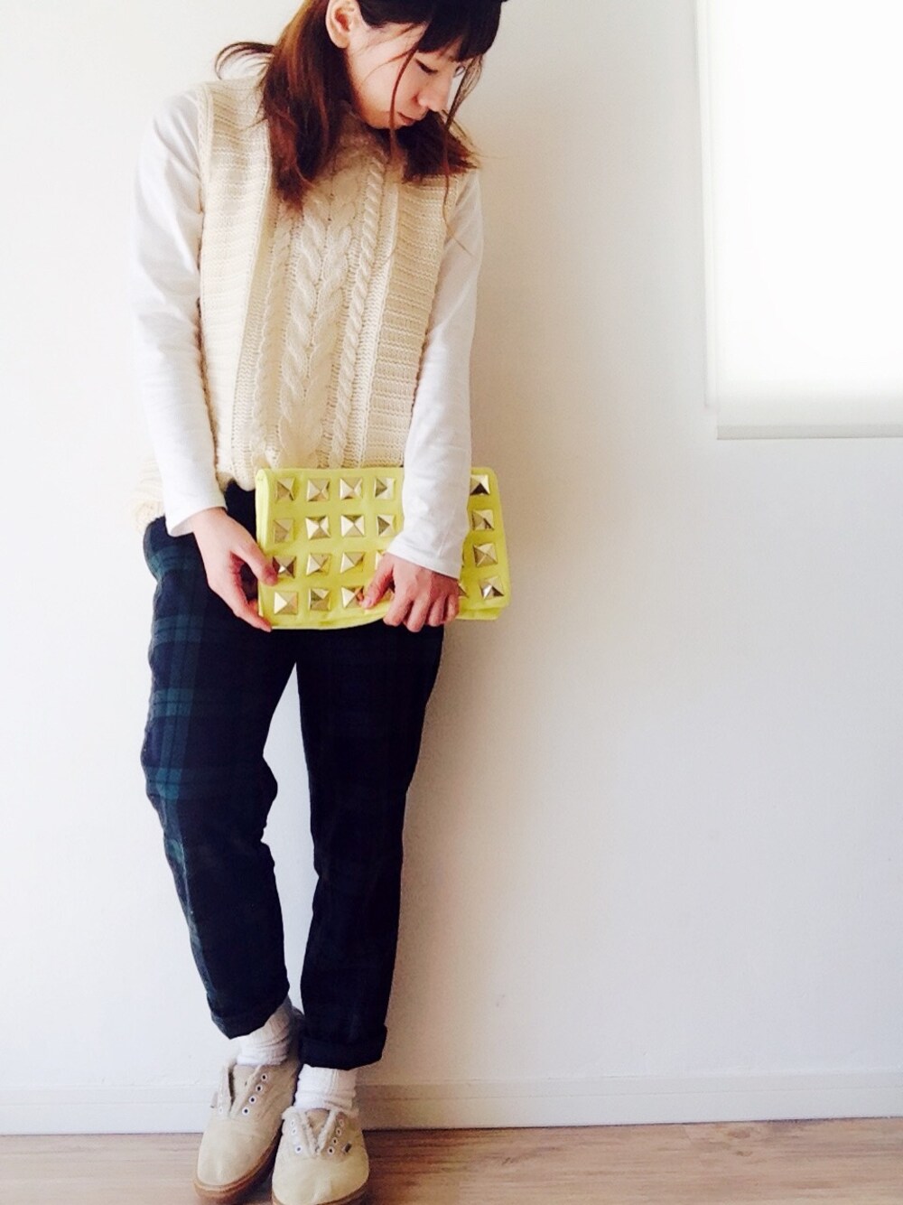 離任式コーデ。 娘ふたりも学校を離れる先生に手紙を書いて 持って行きました。 別れは、さみしいですね。 ニットベスト 高校時代ぶりに着ました✨ 今日おろしたてなのに チョコつけちゃいました😂😂😂 よく食べこぼします…。